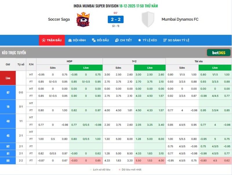 Nhờ vào hệ thống tự động cập nhật, tất cả loại kèo đều được hiển thị liên tục và chính xác real-time, từ kèo Tài – Xỉu, Á – Âu, cho đến các loại kèo phạt góc, kèo thẻ phạt. Anh em cược thủ chỉ cần vài cú click là đã có thể tiếp cận toàn bộ bảng kèo của hàng loạt nhà cái mà không phải lo lắng về việc chậm trễ hay sai sót.