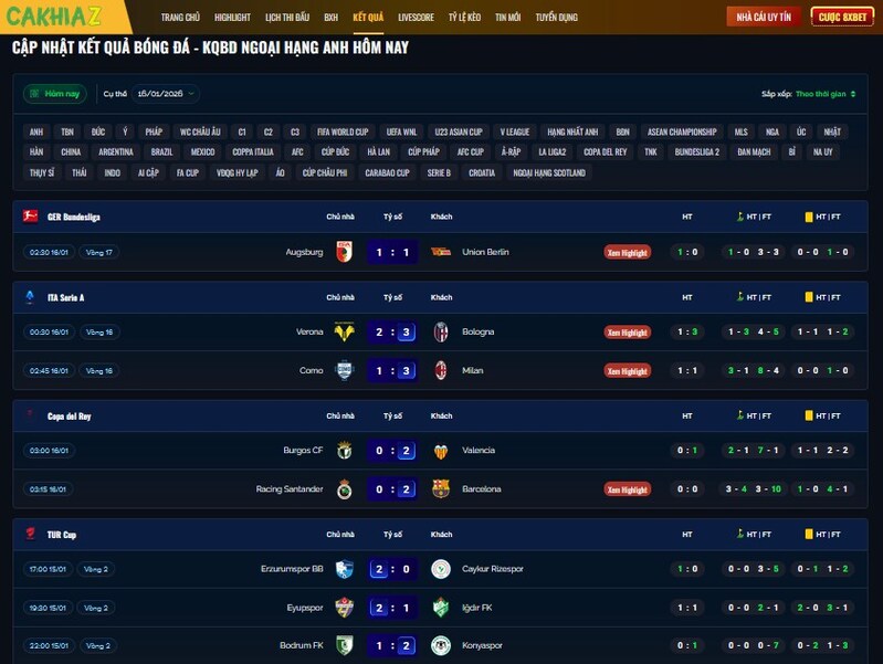 Không chỉ đơn thuần là nơi phát sóng trực tiếp, Cakhia Link còn được đánh giá cao ở khả năng cập nhật kết quả bóng đá nhanh chóng, chính xác, giúp người xem dễ dàng nắm bắt diễn biến các giải đấu mỗi ngày. Chính sự kết hợp giữa link xem mượt và kết quả cập nhật liên tục đã tạo nên một trải nghiệm trọn vẹn cho người yêu bóng đá.