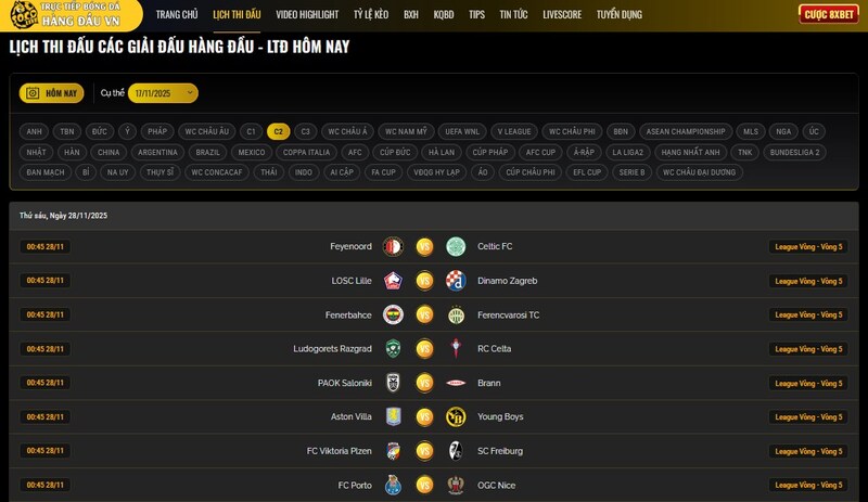 C2 – Europa League là một trong những nội dung được nhiều fan quan tâm vì các trận đấu tại đây luôn kịch tính và khó đoán. Soco Live cập nhật lịch thi đấu c2 theo từng vòng, từng bảng cực kỳ nhanh và chính xác.