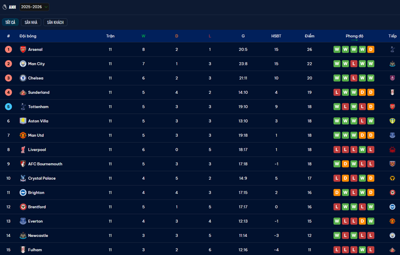 Hơn nữa, trang web này tối ưu hóa trải nghiệm trên cả desktop lẫn thiết bị di động, đảm bảo người hâm mộ có thể cập nhật bảng xếp hạng mọi lúc mọi nơi. Từ những trận cầu sôi động của Manchester United, Arsenal hay Tottenham, đến các đội bóng nhỏ hơn trong Premier League, mọi thay đổi trên bảng xếp hạng đều được phản ánh tức thì, mang lại cảm giác sống cùng nhịp điệu mùa giải cho người hâm mộ.